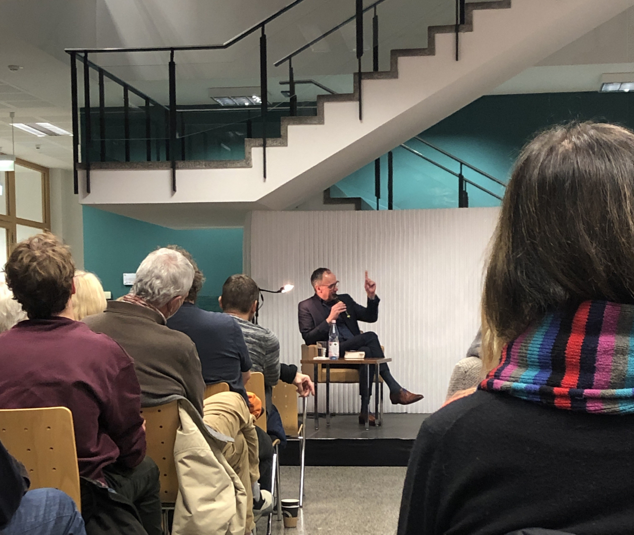 Bei der Buchvorstellung des neuen Romans "Transatlantik" sprach und las Volker Kutscher (links) gemeinsam mit Hanno Hochmuth (rechts) über die Figuren des Romans und über Zeitgeschichtliches.