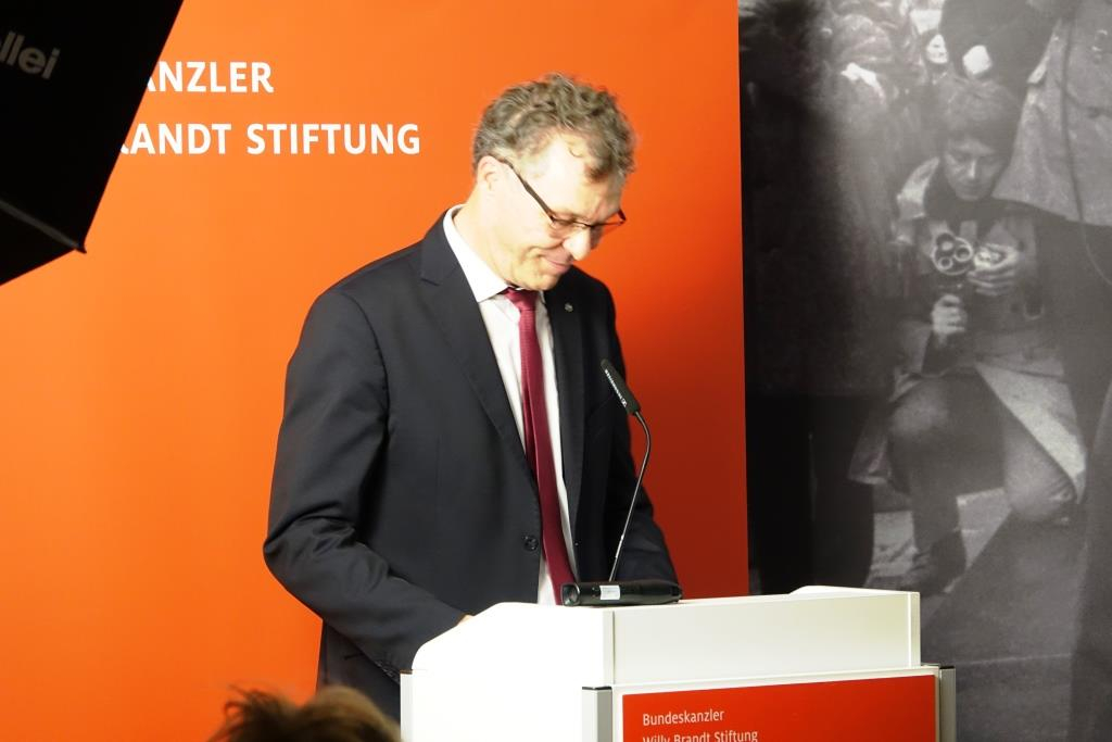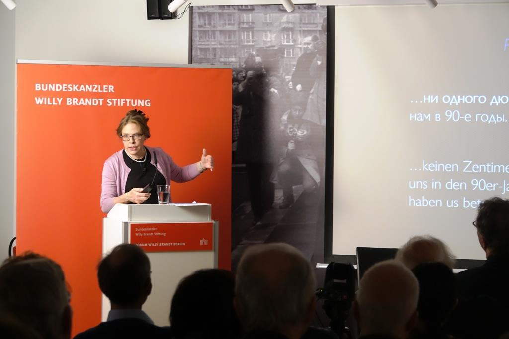 Nach einem Grußwort von Wolfram Hoppenstedt (Geschäftsführer der Bundeskanzler-Willy-Brandt-Stiftung) und der Begrüßung von Frank Bösch (Direktor des ZZF Potsdam) präsentierte Mary Sarotte ihr Buch. Anschließend diskutierten die Autorin und Frank Bösch.