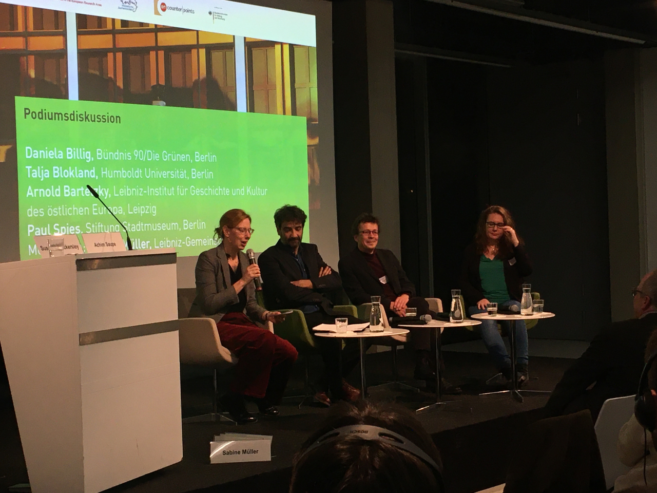 Bei der gut besuchten, öffentlichen Veranstaltung diskutierten Achim Saupe und Susannah Eckersley vom ZZF Potsdam mit Daniela Billig (MdA, Bündnis90/Die Grünen, Berlin), Talja Blokland (Humboldt Universität zu Berlin), Arnold Bartetzky (Leibniz‐Institut für Geschichte und Kultur des östlichen Europas, Leipzig), Paul Spies (Stiftung Stadtmuseum, Berlin) und Dr. Sabine Müller (Leibniz-Gemeinschaft).