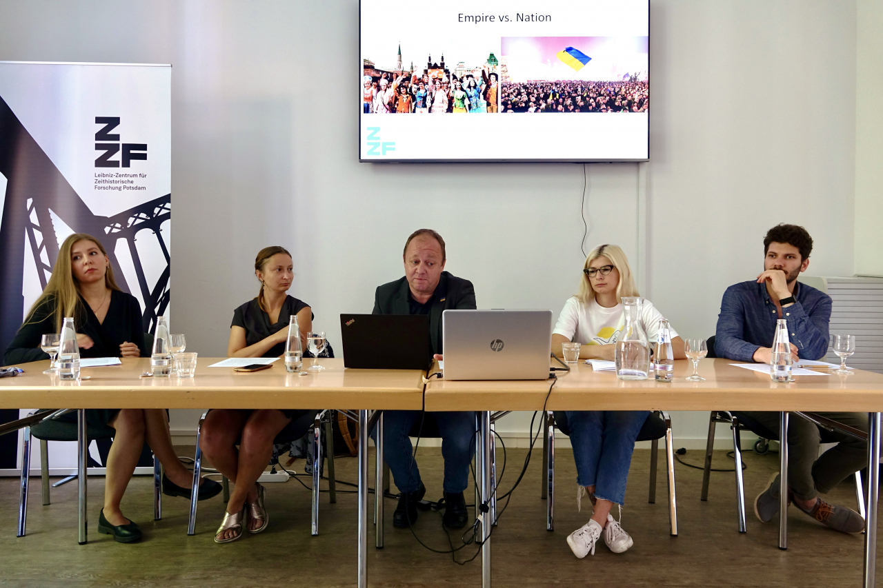 Nach Kriegsbeginn mussten die Historikerinnen Olha Korniienko und Iuliia Skubytska aus der Ukraine fliehen und sind nun als Visiting Fellows am ZZF. Zusammen mit unseren Kollegen Evgen Zinger, der in der Ukraine geboren ist, und Prof. Dr. Jan Claas Behrends wollen wir uns näher mit ukrainischen Perspektiven auf diesen Krieg auseinanderzusetzen. Ziel der Veranstaltung ist es, diesen Krieg und die komplizierten russisch-ukrainischen Verhältnisse aus historischer Sicht dem deutschen Publikum näher zu bringen.