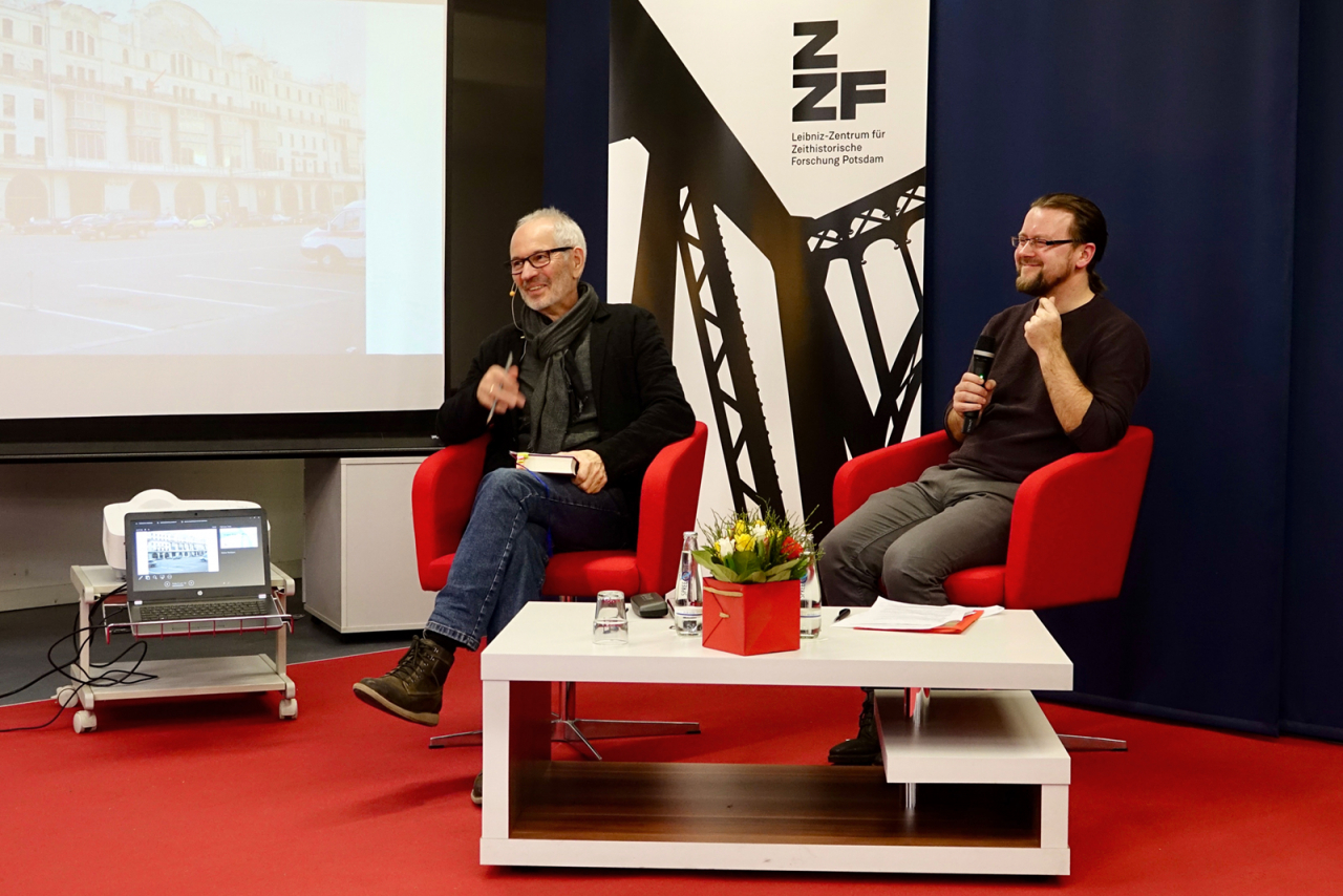"Ich sehe was, was du nicht siehst. Das Spiel hast du mir beigebracht. Ich sehe was, was du nicht siehst, und das ist: Deine Kaderakte, Charlotte." Mit diesen Worten leitet Eugen Ruge seinen fesselnden Roman »Metropol« ein. Charlotte ist seine Großmutter. Unter anderem aus ihrer Perspektive schildert er, gestützt auf Archivquellen, den stalinistischen Terror im Moskau der 1930er-Jahre. Am Abend des 11. Februar besuchte der Autor das ZZF für eine Lesung. Moderiert von Uwe Sonnenberg, drehte sich das Gespräch auch um die Frage, ob seine Art, sich diesem schwierigen Thema anzunähern, künftige wissenschaftliche Studien inspirieren könne.