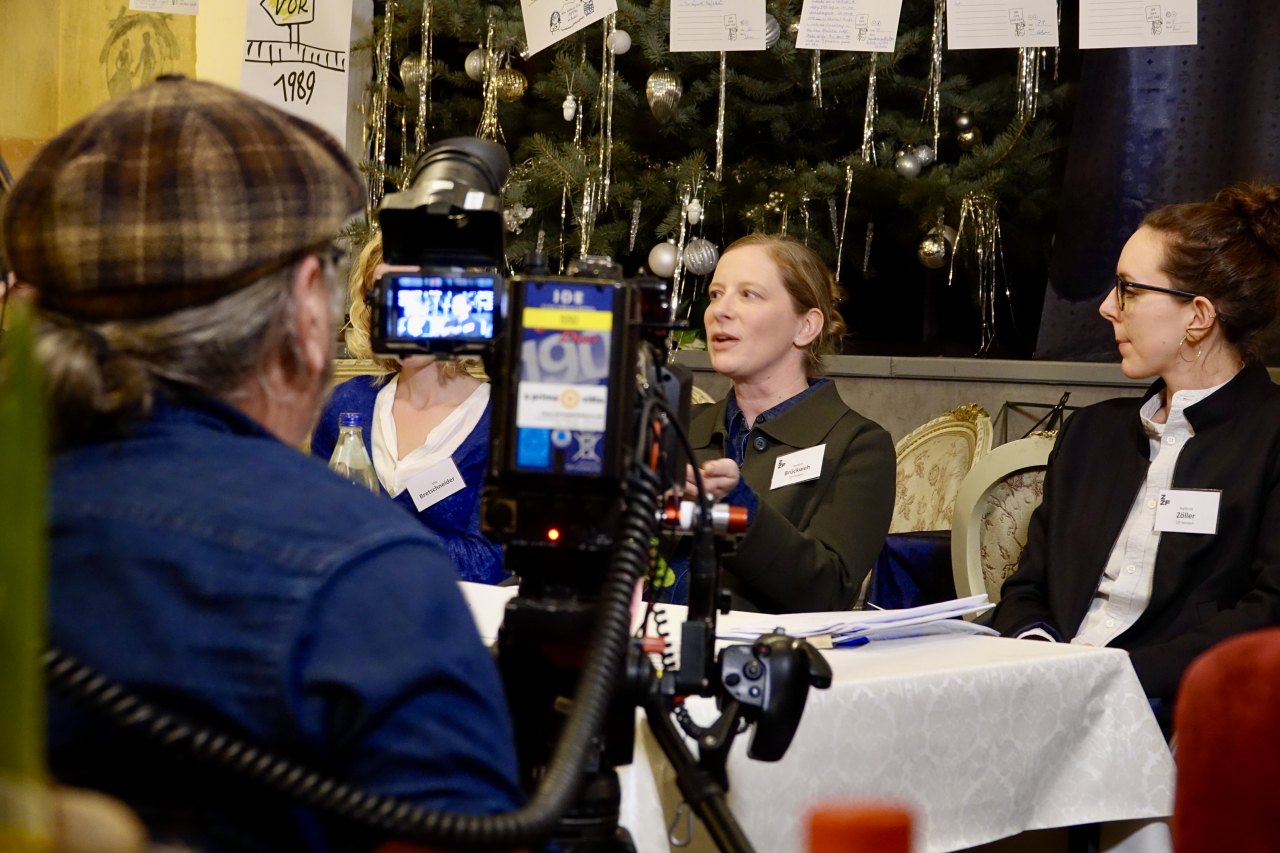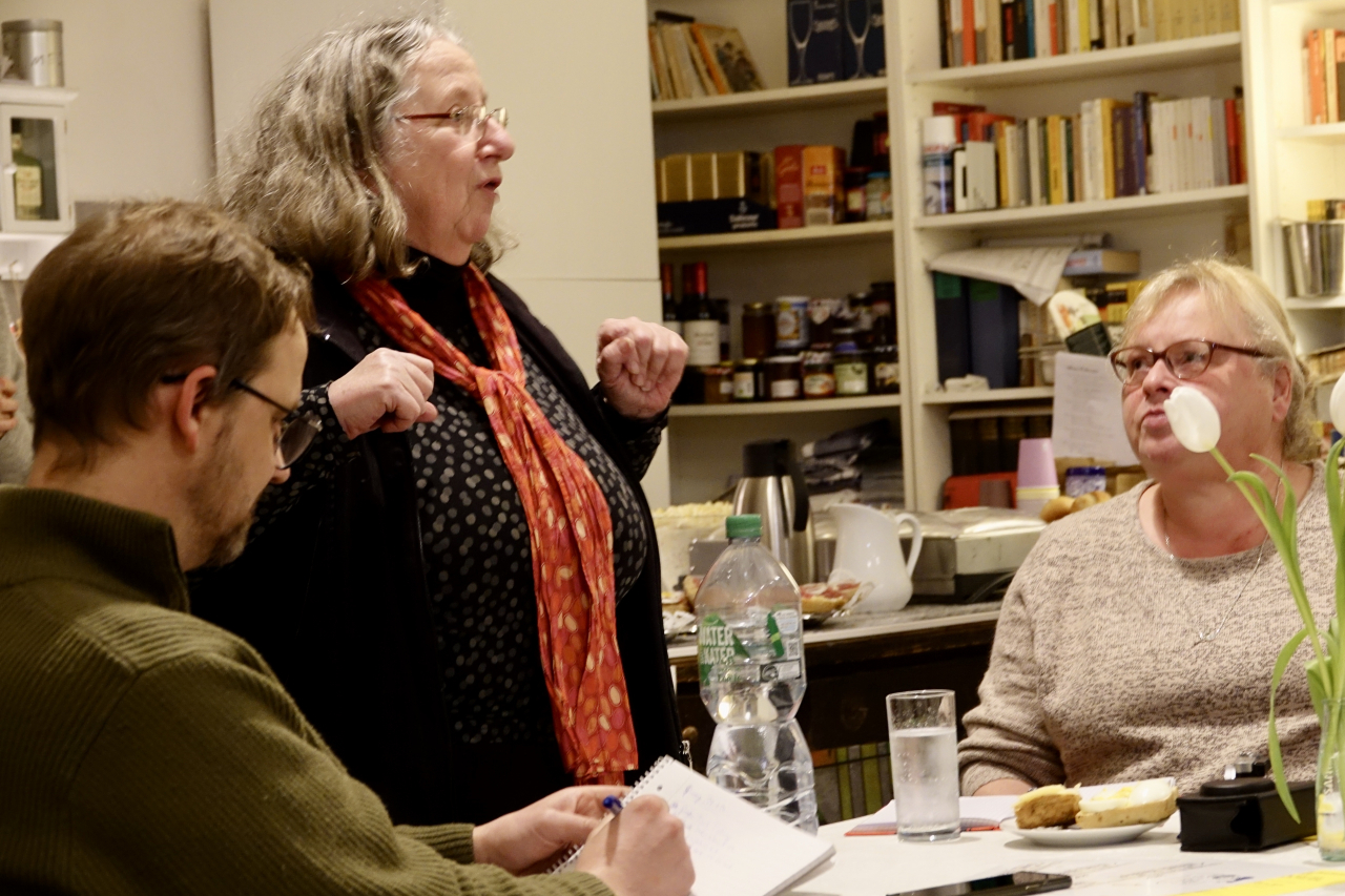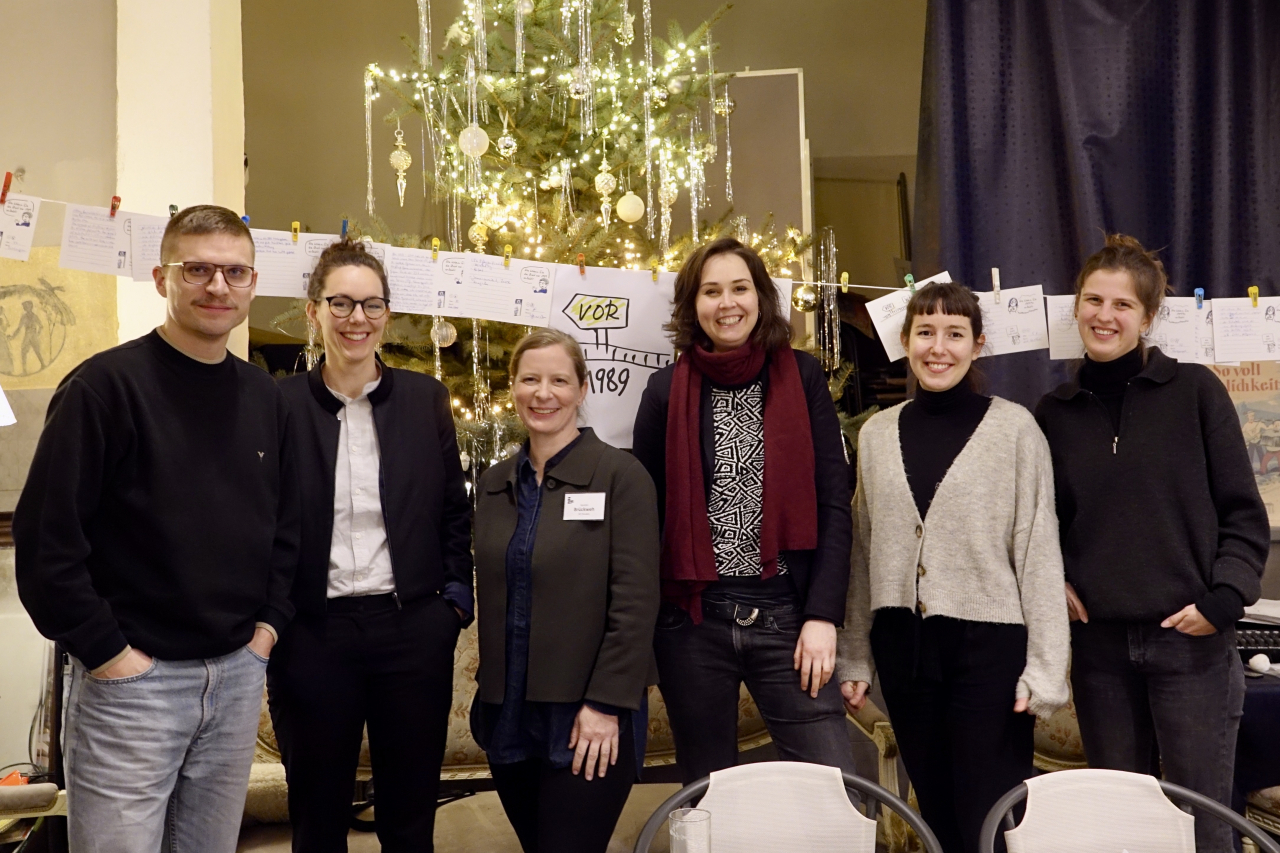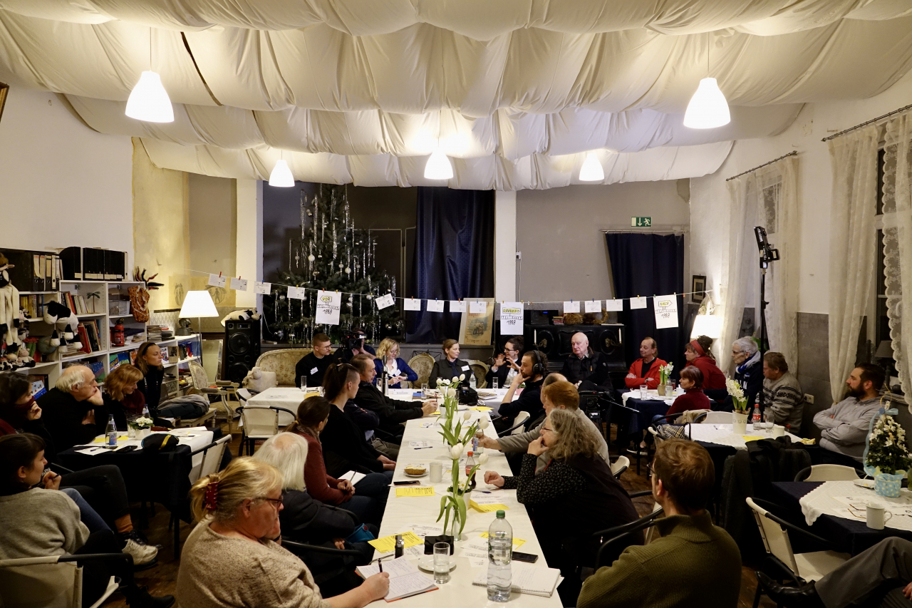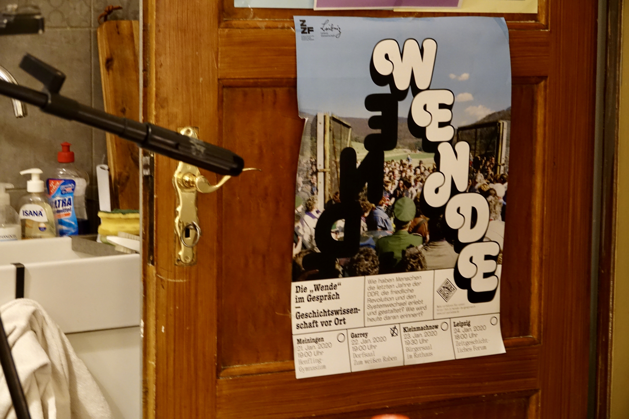 Die Dialogreise der von Kerstin Brückweh geleiteten ZZF-Forschungsgruppe »Die lange Geschichte der ,Wende‘« führt durch drei Bundesländer: In Brandenburg, Sachsen und Thüringen stellten die Forscher*innen ihre ersten Ergebnisse vor. Ziel der Gesprächsreihe ist es, im Sinne des Ansatzes der »Citizen Science – Bürger schaffen Wissen« mit Zeitzeug*innen ins Gespräch zu kommen und sie aktiv in den Forschungsprozess einzubinden. Nach einer Vorstellung des Forschungsteams und einer kurzen Präsentation der vorläufigen Ergebnisse hatten die Gäste die Möglichkeit, sich in kleineren Gesprächsrunden mit den Historiker*innen zu unterschiedlichen Fragen und Themen auszutauschen. Während in Meiningen die Erinnerung an die Schulzeit im Mittelpunkt stand, so ging es in Garrey u.a. darum, ob 1989 eine Revolution oder eine »Wende« stattgefunden hat, wer die Geschichte der DDR wie schreibt, inwiefern sich unsere Arbeitsweise heute von den Methoden und Theorien der DDR-Geschichtswissenschaft unterscheidet und ob man sich im Westen Deutschlands überhaupt für den Osten interessiert.