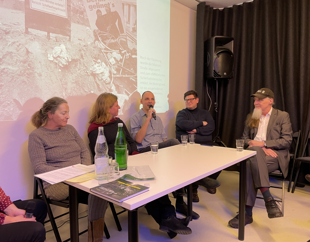 Danach diskutierten die Autor:innen des Buches „Traum und Trauma. Die Besetzung und Räumung der Mainzer Straße 1990 in Ost-Berlin“ mit: