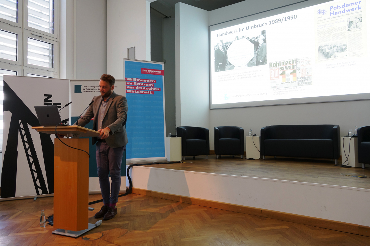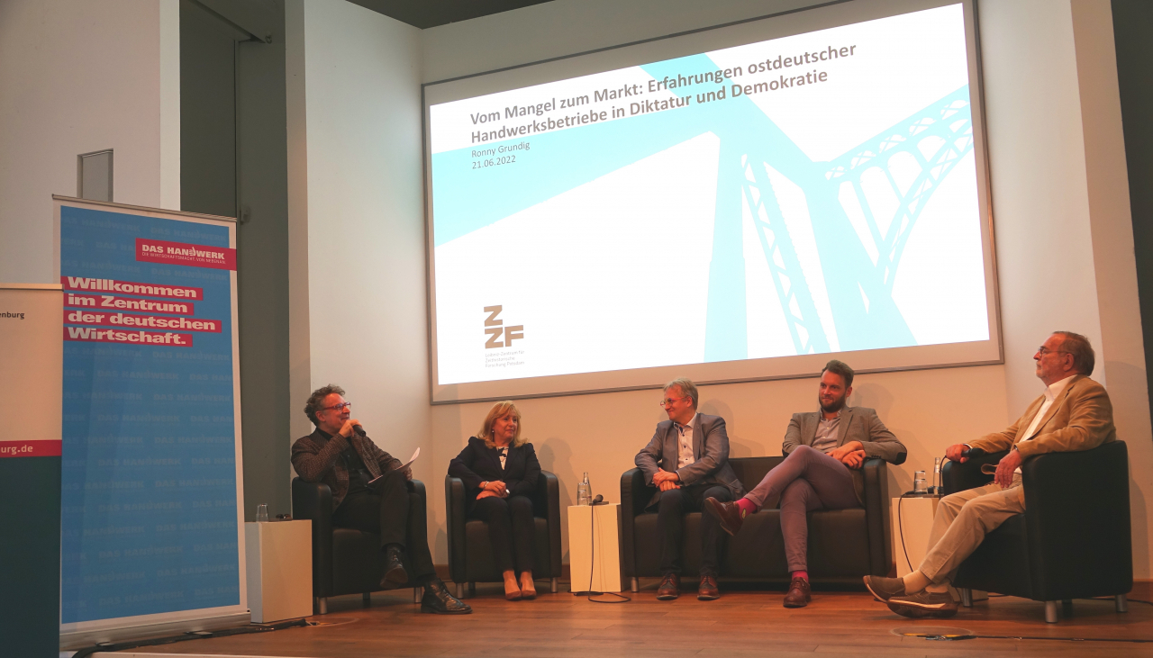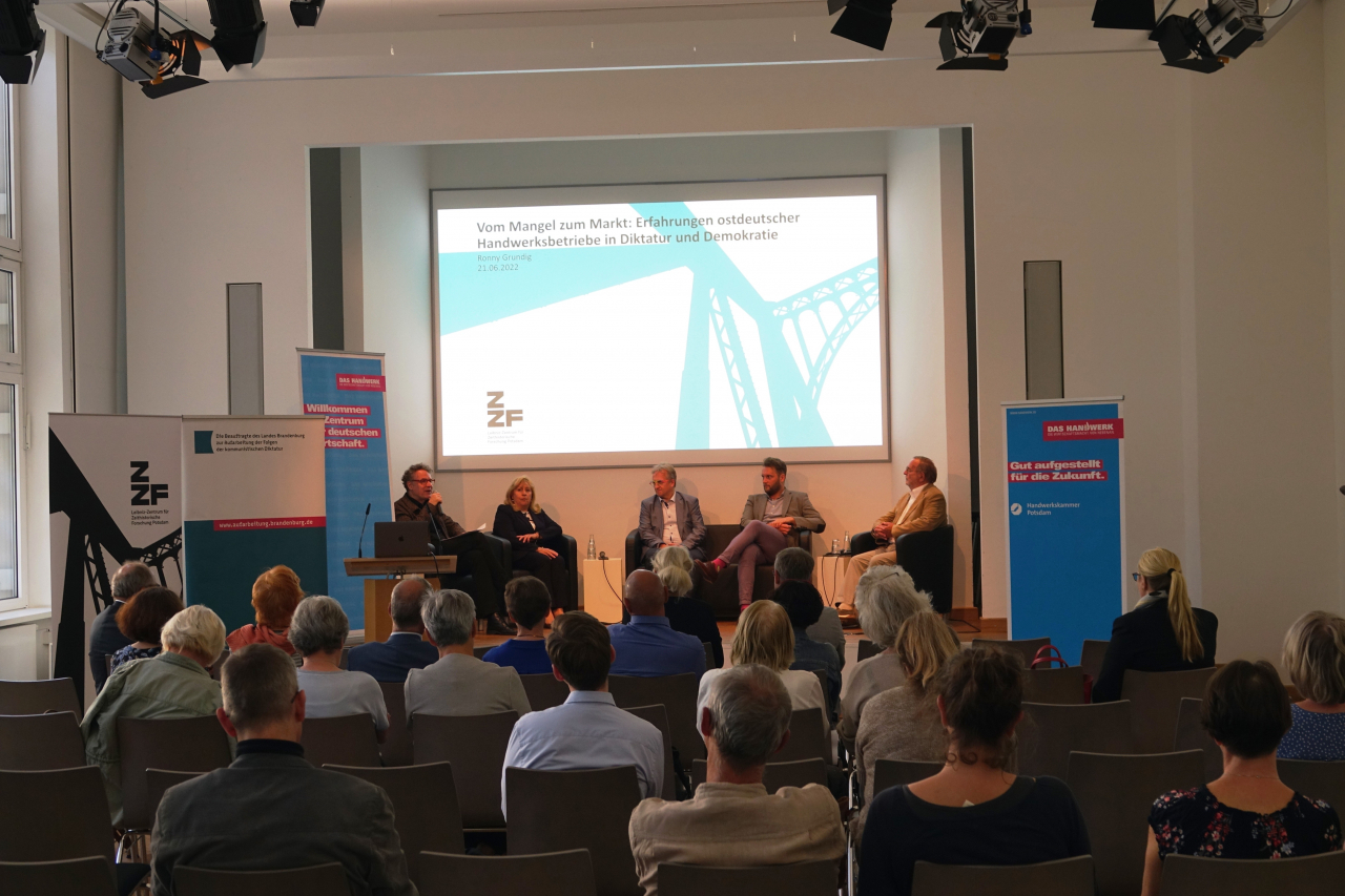 Anlässlich des 50. Jahrestags der letzten großen Verstaatlichungswelle der DDR im Jahr 1972, bei der viele erfolgreiche Handwerksbetriebe ihre Selbständigkeit verloren, setzt sich die Veranstaltung mit den Problemen, Handlungsspielräumen und Überlebensstrategien des ostdeutschen Handwerks von der Ära Honecker bis in die Transformationszeit auseinander. Nach einem einführenden Vortrag von Dr. Ronny Grundig (ZZF) diskutieren die Veranstalter mit Handwerker*innen unterschiedlicher Gewerke darüber, wie sich ihre Betriebe unter den Bedingungen der zentralen Planwirtschaft behaupten konnten, und welchen Anteil das Handwerk nach 1990 am ökonomischen, gesellschaftlichen und politischen Neuanfang hatte.