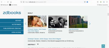The first digital book has been available since December 2021: "Echt inszeniert. Historical Authenticity and Media in Modernity." The anthology, edited by Christoph Classen, Achim Saupe and Hans-Ulrich Wagner, uses the potentials offered by the online format for an integration of audiovisual sources into scholarly publication. Therefore, the visual as well as the cinematic and auditory sources to which the authors* refer become an integrative part of the presentation.