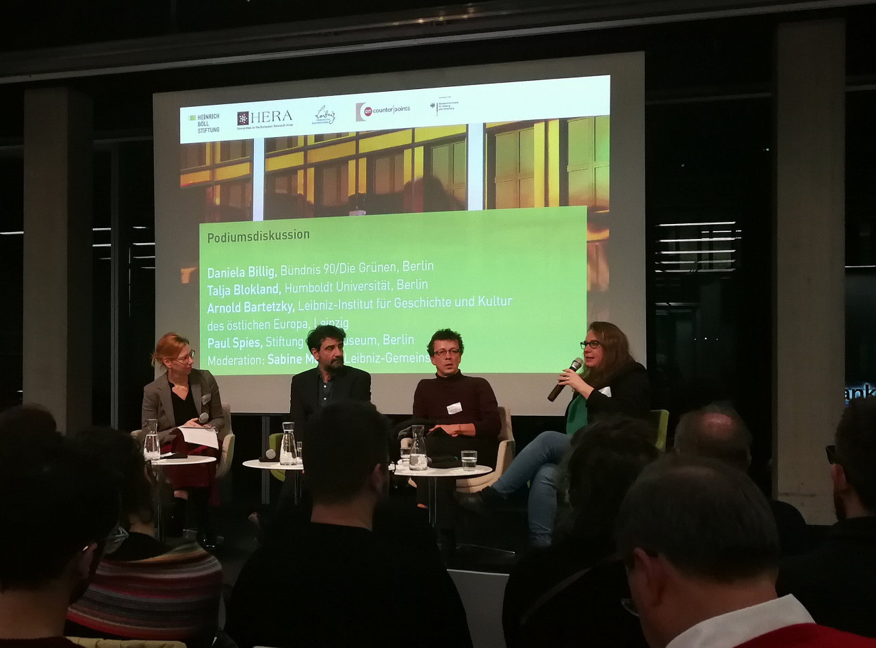 Bei der gut besuchten, öffentlichen Veranstaltung diskutierten Achim Saupe und Susannah Eckersley vom ZZF Potsdam mit Daniela Billig (MdA, Bündnis90/Die Grünen, Berlin), Talja Blokland (Humboldt Universität zu Berlin), Arnold Bartetzky (Leibniz‐Institut für Geschichte und Kultur des östlichen Europas, Leipzig), Paul Spies (Stiftung Stadtmuseum, Berlin) und Dr. Sabine Müller (Leibniz-Gemeinschaft).