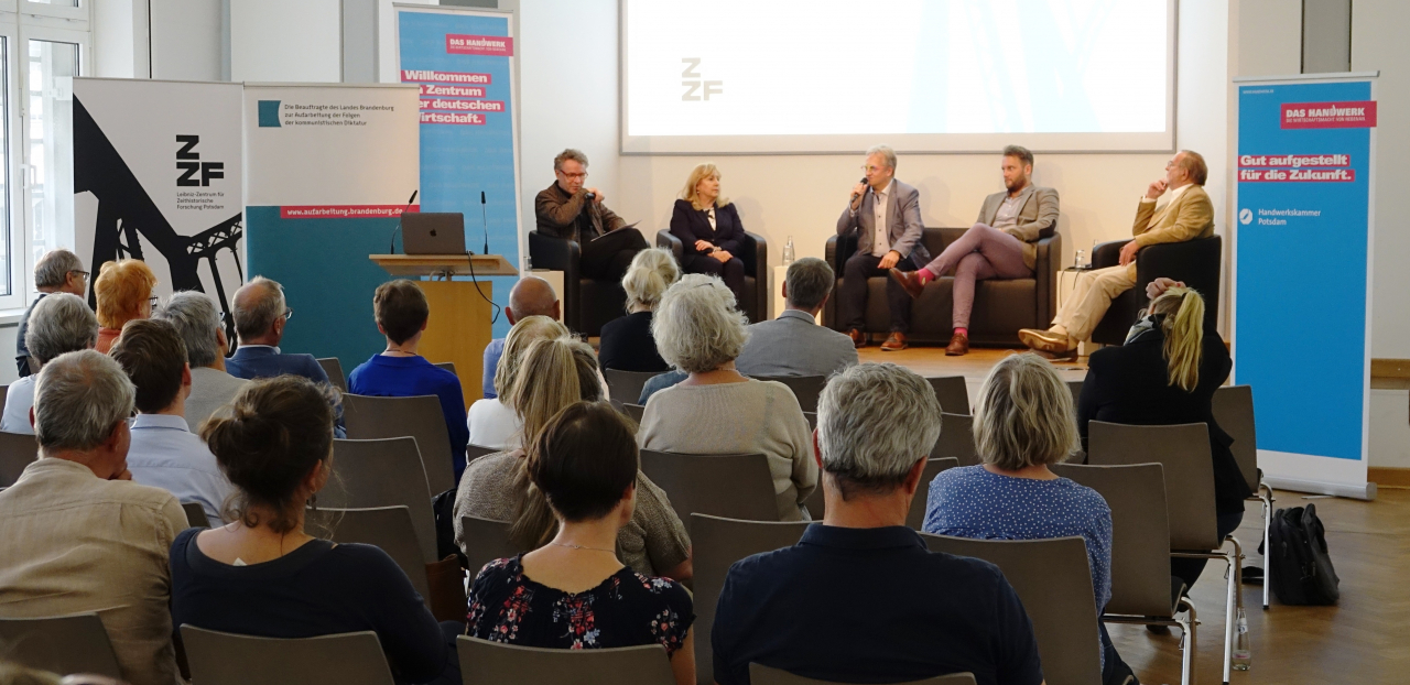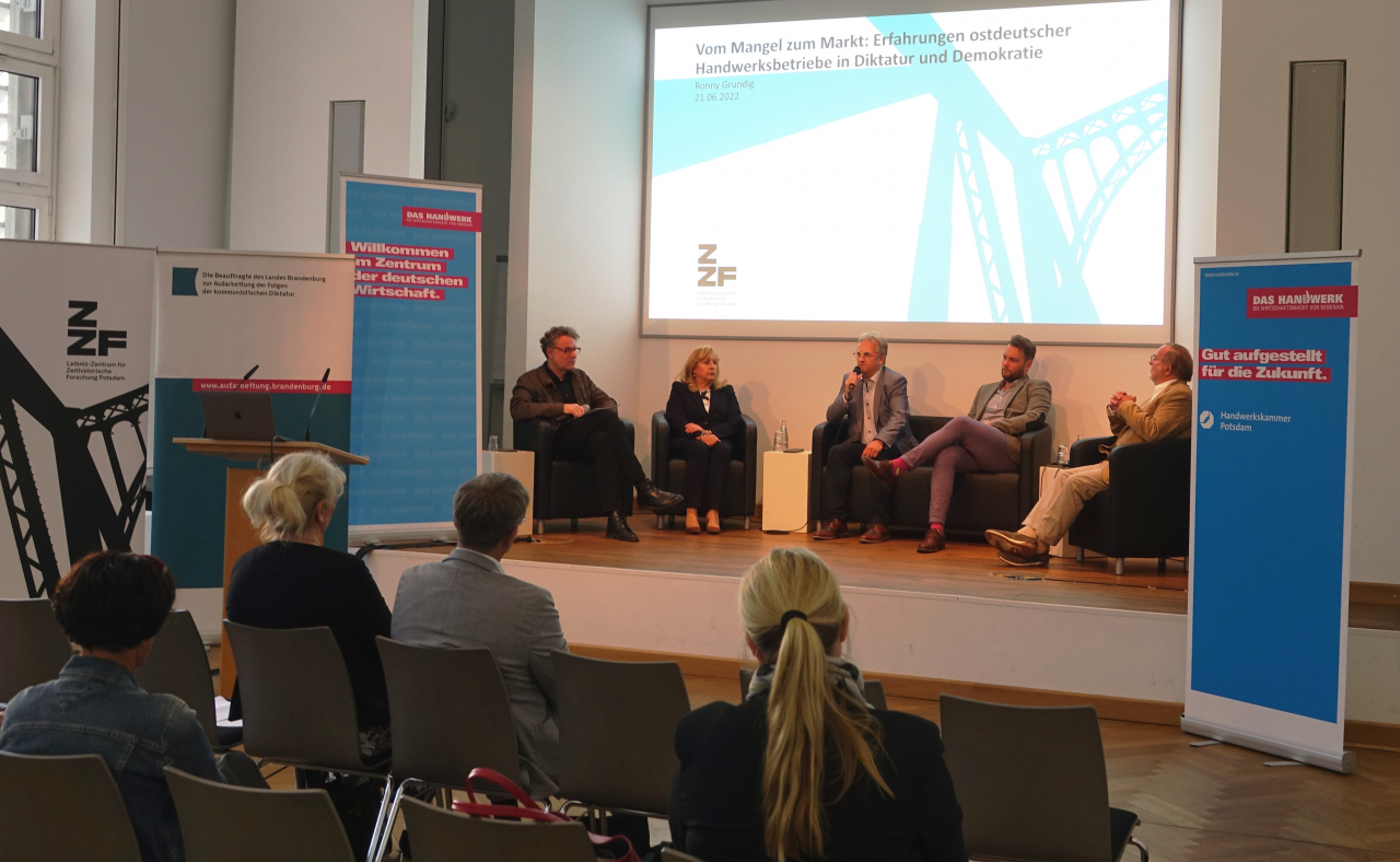 Anlässlich des 50. Jahrestags der letzten großen Verstaatlichungswelle der DDR im Jahr 1972, bei der viele erfolgreiche Handwerksbetriebe ihre Selbständigkeit verloren, setzt sich die Veranstaltung mit den Problemen, Handlungsspielräumen und Überlebensstrategien des ostdeutschen Handwerks von der Ära Honecker bis in die Transformationszeit auseinander. Nach einem einführenden Vortrag von Dr. Ronny Grundig (ZZF) diskutieren die Veranstalter mit Handwerker*innen unterschiedlicher Gewerke darüber, wie sich ihre Betriebe unter den Bedingungen der zentralen Planwirtschaft behaupten konnten, und welchen Anteil das Handwerk nach 1990 am ökonomischen, gesellschaftlichen und politischen Neuanfang hatte.